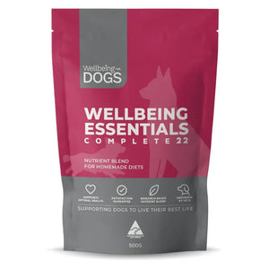 Wellbeing essentials takes the guesswork out so you can have confidence in your homemade food for your dog. Formulated to provide the micronutrients (vitamins & minerals including balanced calcium) frequently low or missing in homemade food for dogs.